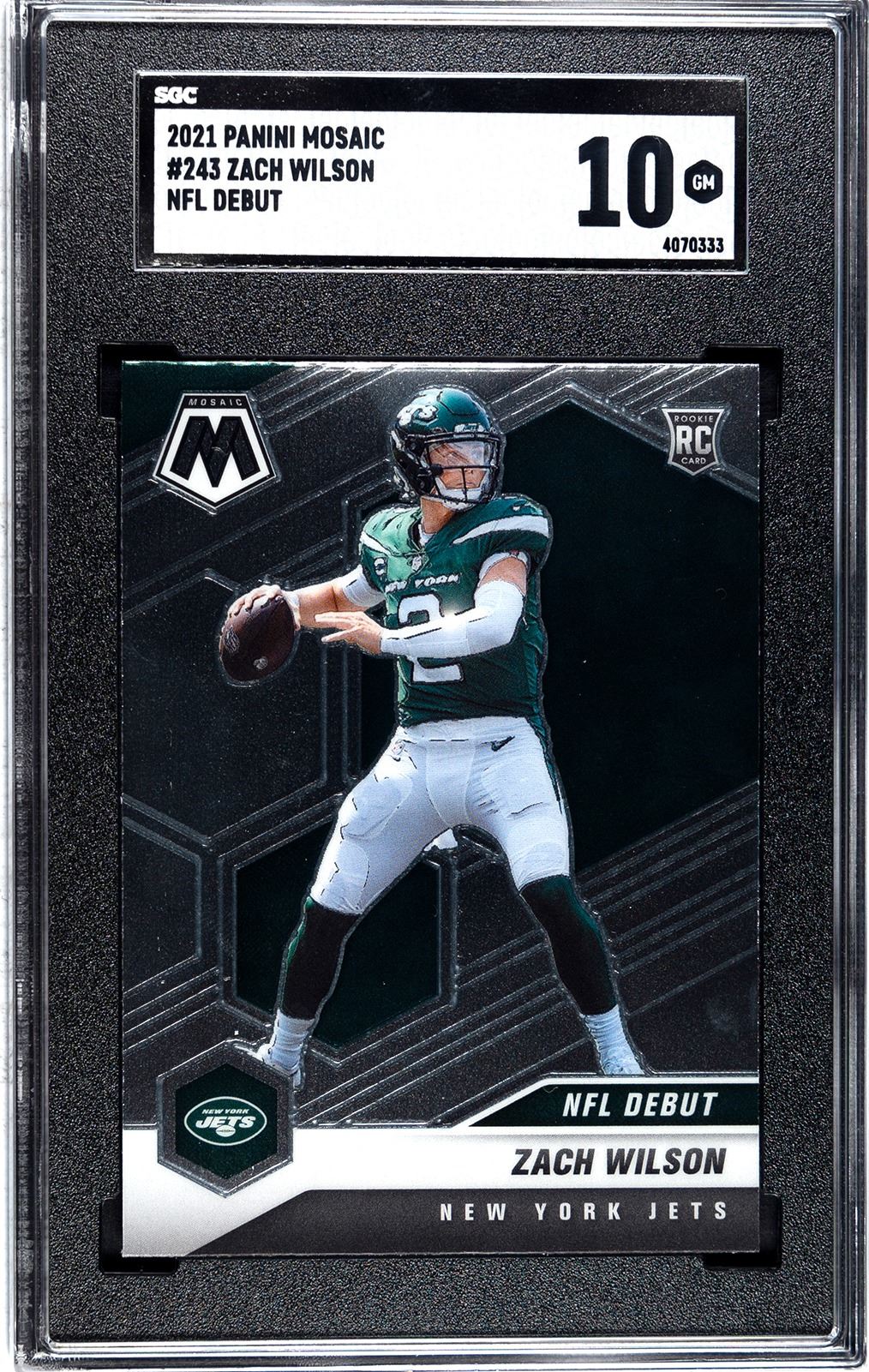 2021 Panini Mosaic NFL Debut Zach Wilson RC, graded top of the line 10 Gem Mint by SGC!