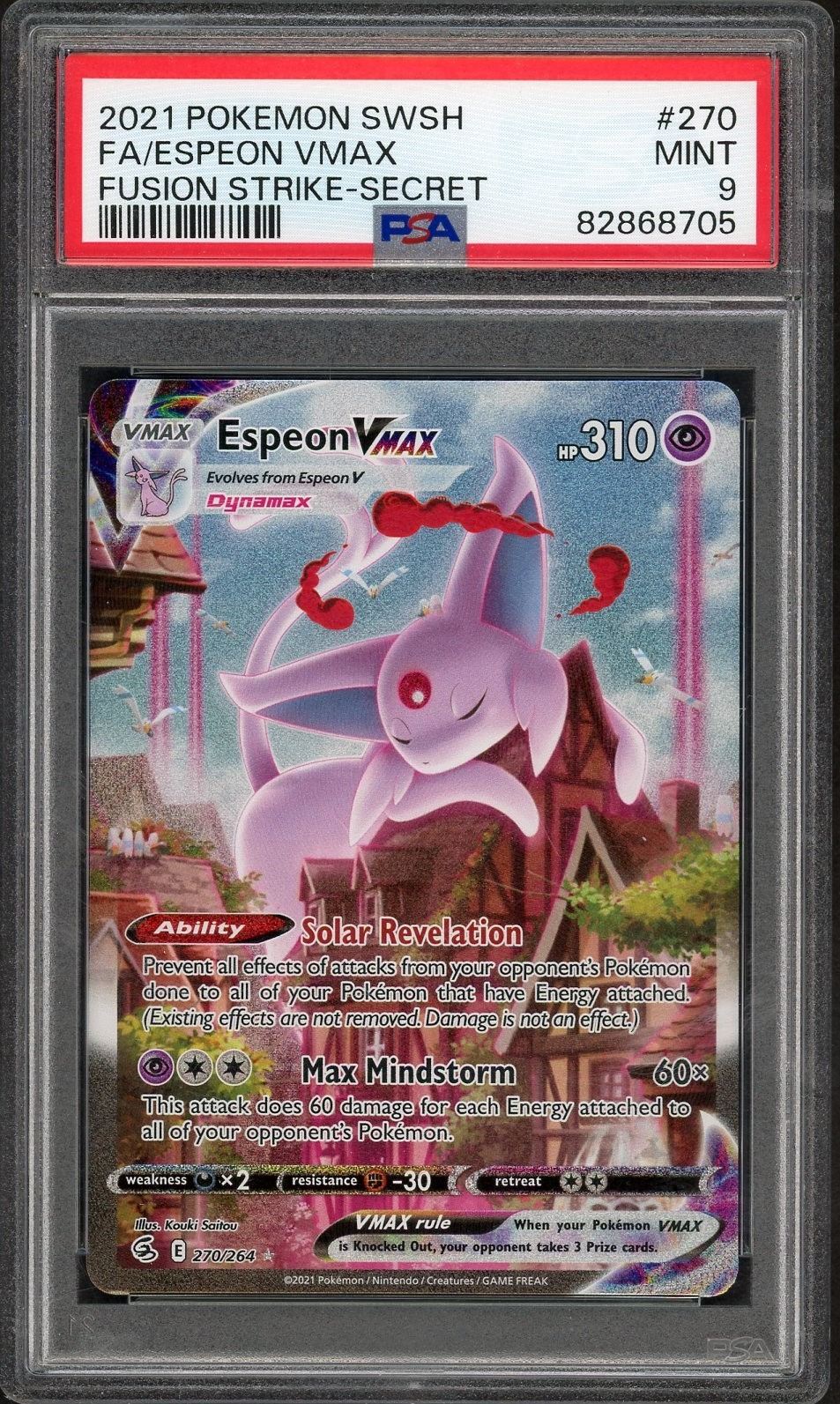 2021 Pokémon Full Art Espeon VMAX alternate art from the Fusion Strike set is graded a mint 9 by PSA!