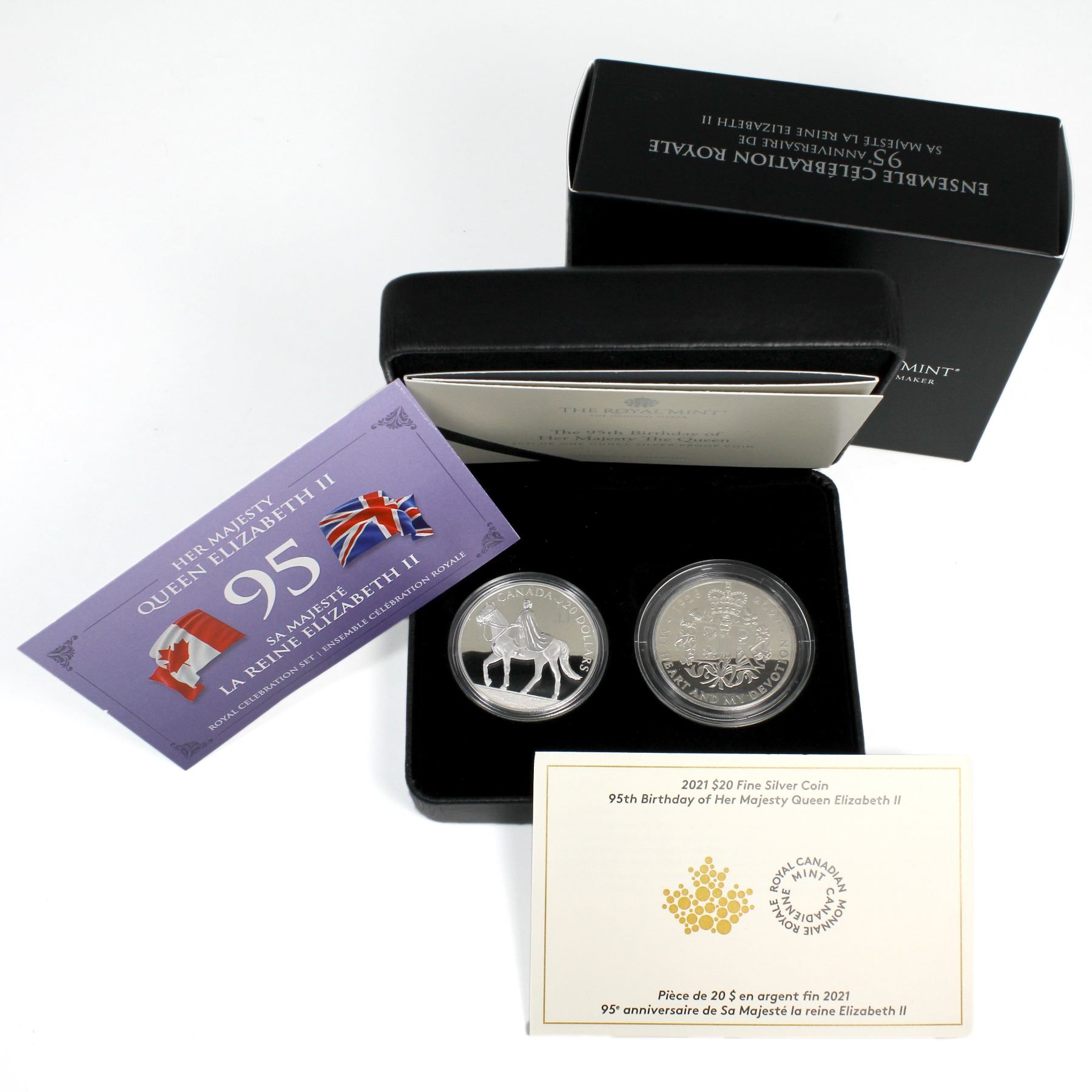 2021 Royal Celebration 2-coin Fine Silver Set Issued in a Partnership of the Royal Canadian Mint and Royal Mint (Light toning spot on obverse of UK coin). TAX Exempt