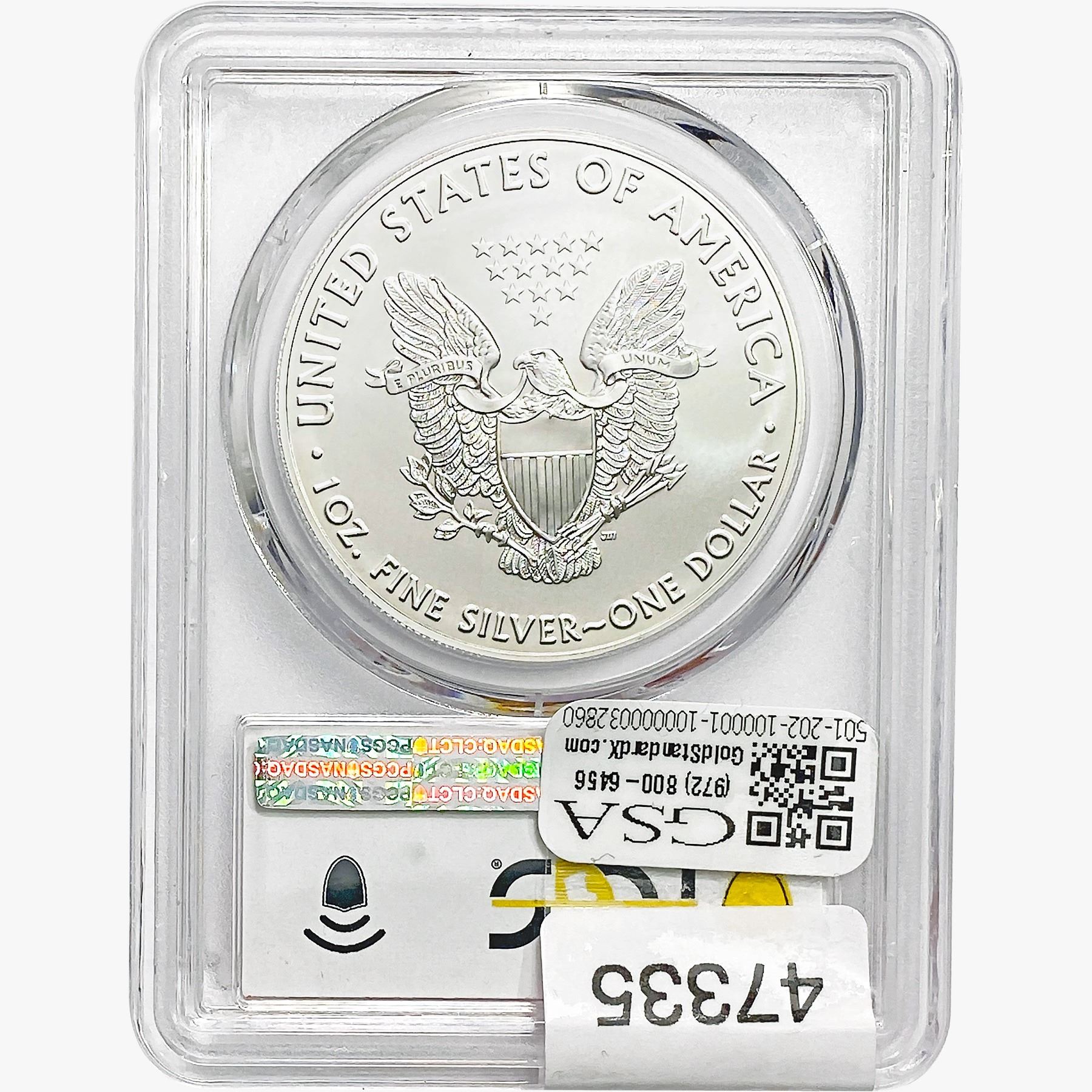 e. Coins sold referencing a third-party grading service are sold “AS IS” without any express or implied warranty, except for a guarantee by GSA that they are genuine. Removal or alteration of the holder, voids all of Bidder’s claims concerning that Product. Certain warranties may be available from the grading services and Bidders are referred to them for further details: Numismatic Guaranty Corporation (NGC), PO Box 4776, Sarasota, FL 34230, www.ngccoin.com/services/writtenguarantee.asp; Professional Coin Grading Services (PCGS), PO Box 9458, Newport Beach, CA 92658, www.pcgs.com/guarantee.html; ANACS, 6555 S. Kenton St., Ste. 303, Englewood, CO 80111; and Independent Coin Grading Co. (ICG), 7901 East Bellview, Ave., Suite 50, Englewood, CO 80111.
