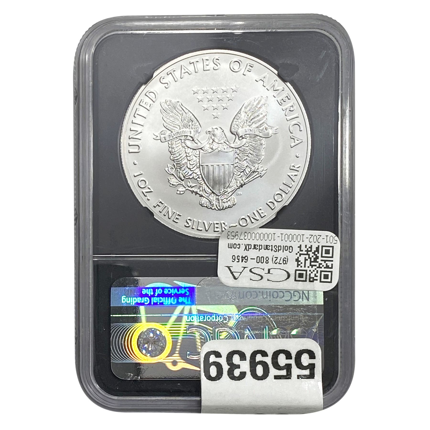 e. Coins sold referencing a third-party grading service are sold “AS IS” without any express or implied warranty, except for a guarantee by GSA that they are genuine. Removal or alteration of the holder, voids all of Bidder’s claims concerning that Product. Certain warranties may be available from the grading services and Bidders are referred to them for further details: Numismatic Guaranty Corporation (NGC), PO Box 4776, Sarasota, FL 34230, www.ngccoin.com/services/writtenguarantee.asp; Professional Coin Grading Services (PCGS), PO Box 9458, Newport Beach, CA 92658, www.pcgs.com/guarantee.html; ANACS, 6555 S. Kenton St., Ste. 303, Englewood, CO 80111; and Independent Coin Grading Co. (ICG), 7901 East Bellview, Ave., Suite 50, Englewood, CO 80111.