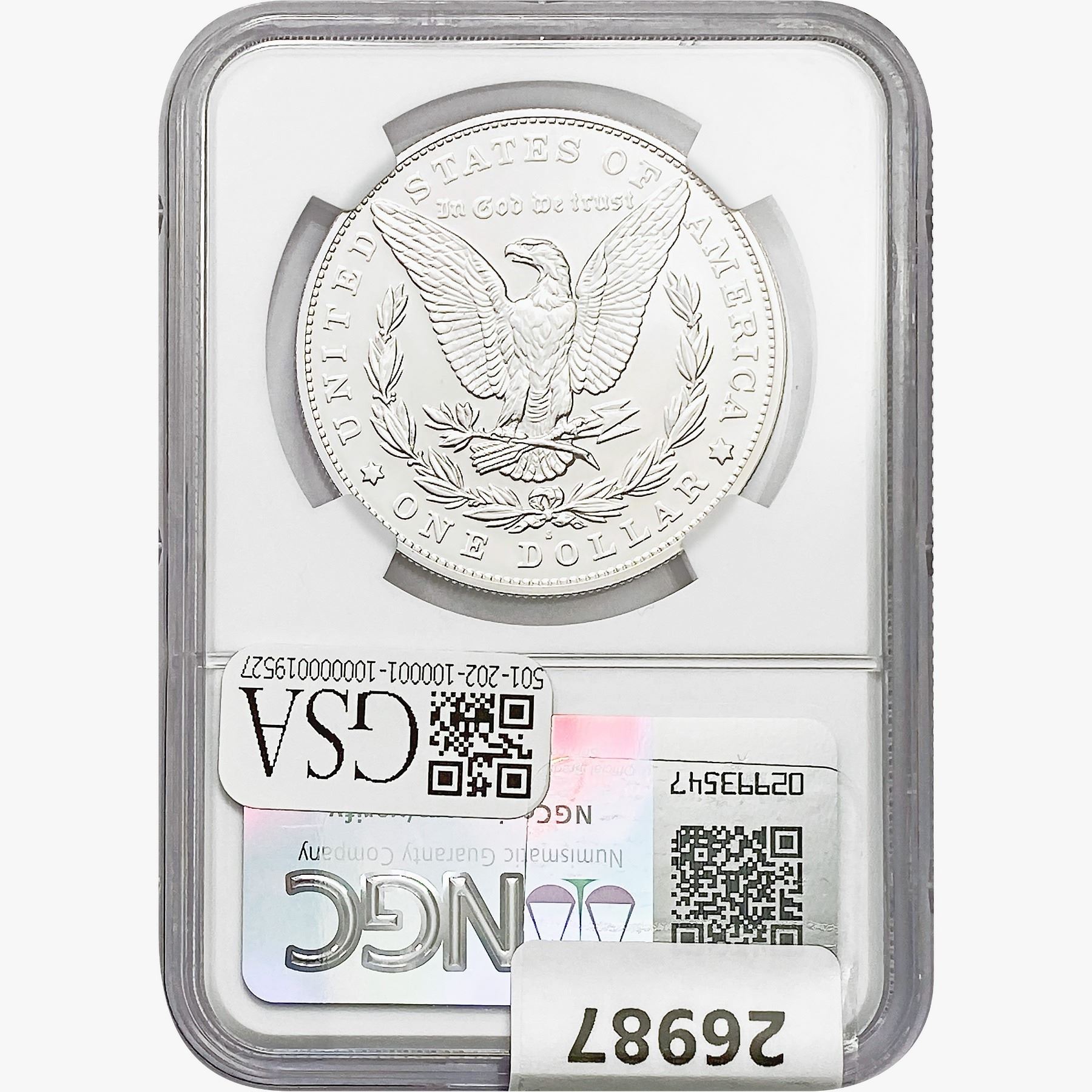 COINS AND CURRENCY LISTED IN GSA'S CATALOG AS GRADED AND ENCAPSULATED BY PCGS, NGC, ANACS, ICG, PCGS CURRENCY, PMG, PCGS BANKNOTE GRADING, CMC OR ANY OTHER THIRD-PARTY GRADING SERVICE ARE LIKEWISE SOLD "AS-IS" EXCEPT AS EXPRESSLY SET FORTH HEREIN. ALL THIRD-PARTY GRADING SERVICE GUARANTEES, INCLUDING AUTHENTICITY, ARE THE SOLE RESPONSIBILITY OF THE THIRD-PARTY GRADING SERVICE AND NOT WARRANTIES OR GUARANTEES OF GSA. BIDDERS SHOULD CONTACT THESE THIRD-PARTY GRADING SERVICES DIRECTLY WITH RESPECT TO ANY CLAIMS OR QUESTIONS THEY MAY HAVE CONCERNING THEIR GUARANTEES AND WARRANTIES. BIDDERS ACKNOWLEDGE AND AGREE THAT AUCTIONEER IS NOT BOUND BY OR LIABLE FOR ANY OPINION OR CERTIFICATION BY ANY THIRD-PARTY GRADING SERVICE. REMOVAL OF A PRODUCT FROM ITS PROTECTIVE CASING OR HOLDER OR ALTERATION OF ANY COIN HOLDER WAIVES ALL RIGHTS CONCERNING THE PRODUCT CONTAINED THEREIN.