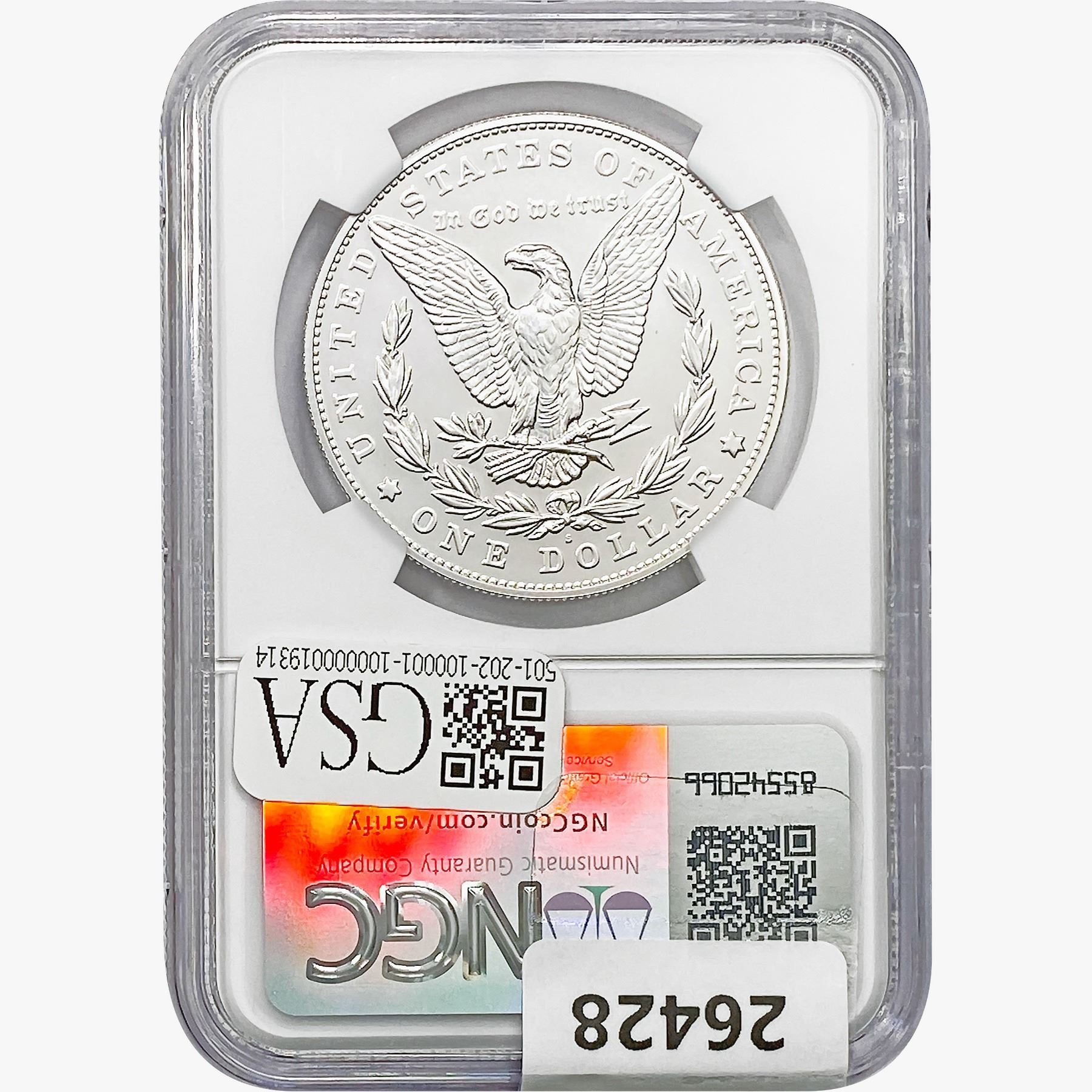e. Coins sold referencing a third-party grading service are sold “AS IS” without any express or implied warranty, except for a guarantee by GSA that they are genuine. Removal or alteration of the holder, voids all of Bidder’s claims concerning that Product. Certain warranties may be available from the grading services and Bidders are referred to them for further details: Numismatic Guaranty Corporation (NGC), PO Box 4776, Sarasota, FL 34230, www.ngccoin.com/services/writtenguarantee.asp; Professional Coin Grading Services (PCGS), PO Box 9458, Newport Beach, CA 92658, www.pcgs.com/guarantee.html; ANACS, 6555 S. Kenton St., Ste. 303, Englewood, CO 80111; and Independent Coin Grading Co. (ICG), 7901 East Bellview, Ave., Suite 50, Englewood, CO 80111.