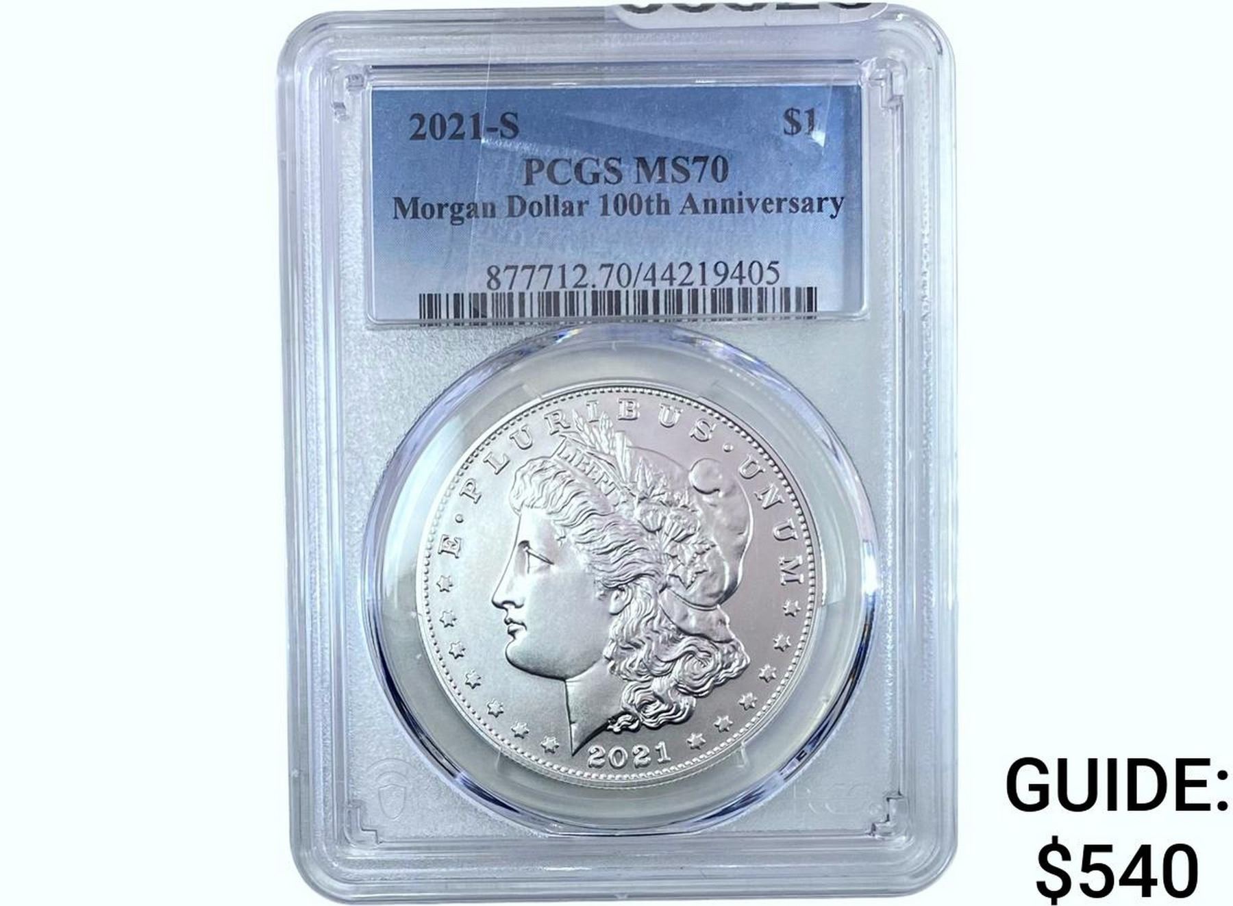 COINS AND CURRENCY LISTED IN GSA’S CATALOG AS GRADED AND ENCAPSULATED BY PCGS, NGC, ANACS, ICG, PCGS CURRENCY, PMG, PCGS BANKNOTE GRADING, CMC OR ANY OTHER THIRD-PARTY GRADING SERVICE ARE LIKEWISE SOLD “AS-IS” EXCEPT AS EXPRESSLY SET FORTH HEREIN. ALL THIRD-PARTY GRADING SERVICE GUARANTEES, INCLUDING AUTHENTICITY, ARE THE SOLE RESPONSIBILITY OF THE THIRD-PARTY GRADING SERVICE AND NOT WARRANTIES OR GUARANTEES OF GSA. BIDDERS SHOULD CONTACT THESE THIRD-PARTY GRADING SERVICES DIRECTLY WITH RESPECT TO ANY CLAIMS OR QUESTIONS THEY MAY HAVE CONCERNING THEIR GUARANTEES AND WARRANTIES. BIDDERS ACKNOWLEDGE AND AGREE THAT AUCTIONEER IS NOT BOUND BY OR LIABLE FOR ANY OPINION OR CERTIFICATION BY ANY THIRD-PARTY GRADING SERVICE. REMOVAL OF A PRODUCT FROM ITS PROTECTIVE CASING OR HOLDER OR ALTERATION OF ANY COIN HOLDER WAIVES ALL RIGHTS CONCERNING THE PRODUCT CONTAINED THEREIN.