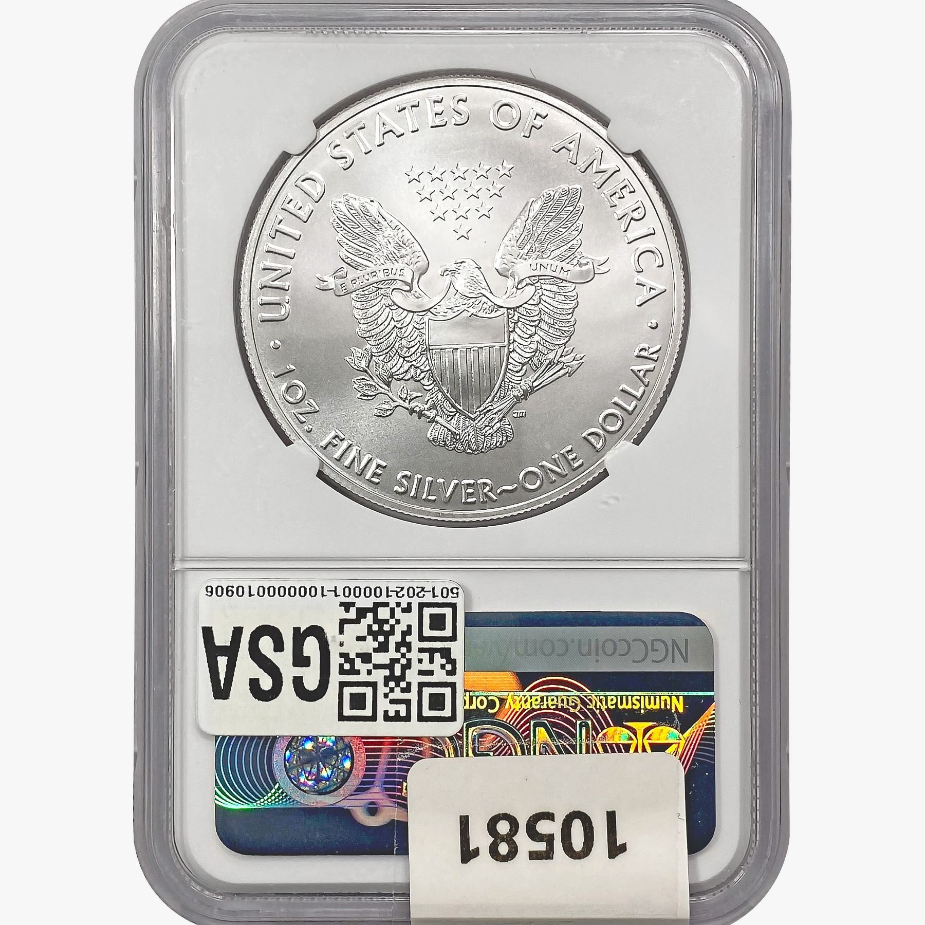 e. Coins sold referencing a third-party grading service are sold “AS IS” without any express or implied warranty, except for a guarantee by GSA that they are genuine. Removal or alteration of the holder, voids all of Bidder’s claims concerning that Product. Certain warranties may be available from the grading services and Bidders are referred to them for further details: Numismatic Guaranty Corporation (NGC), PO Box 4776, Sarasota, FL 34230, www.ngccoin.com/services/writtenguarantee.asp; Professional Coin Grading Services (PCGS), PO Box 9458, Newport Beach, CA 92658, www.pcgs.com/guarantee.html; ANACS, 6555 S. Kenton St., Ste. 303, Englewood, CO 80111; and Independent Coin Grading Co. (ICG), 7901 East Bellview, Ave., Suite 50, Englewood, CO 80111.