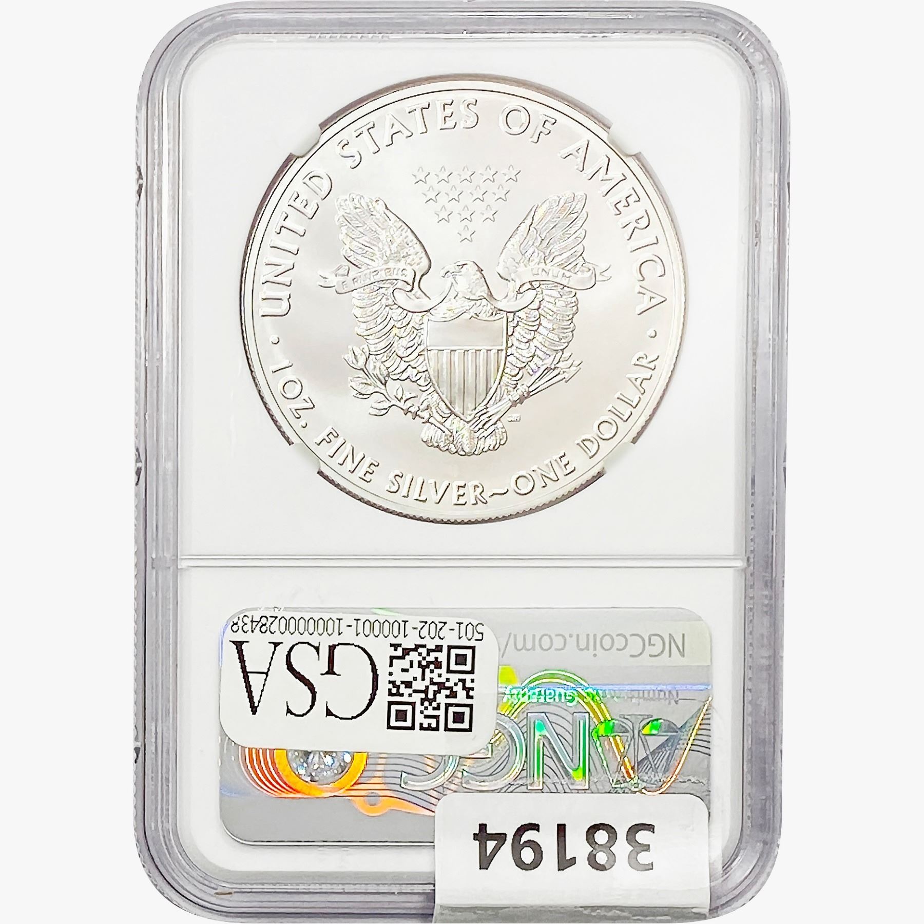 e. Coins sold referencing a third-party grading service are sold “AS IS” without any express or implied warranty, except for a guarantee by GSA that they are genuine. Removal or alteration of the holder, voids all of Bidder’s claims concerning that Product. Certain warranties may be available from the grading services and Bidders are referred to them for further details: Numismatic Guaranty Corporation (NGC), PO Box 4776, Sarasota, FL 34230, www.ngccoin.com/services/writtenguarantee.asp; Professional Coin Grading Services (PCGS), PO Box 9458, Newport Beach, CA 92658, www.pcgs.com/guarantee.html; ANACS, 6555 S. Kenton St., Ste. 303, Englewood, CO 80111; and Independent Coin Grading Co. (ICG), 7901 East Bellview, Ave., Suite 50, Englewood, CO 80111.