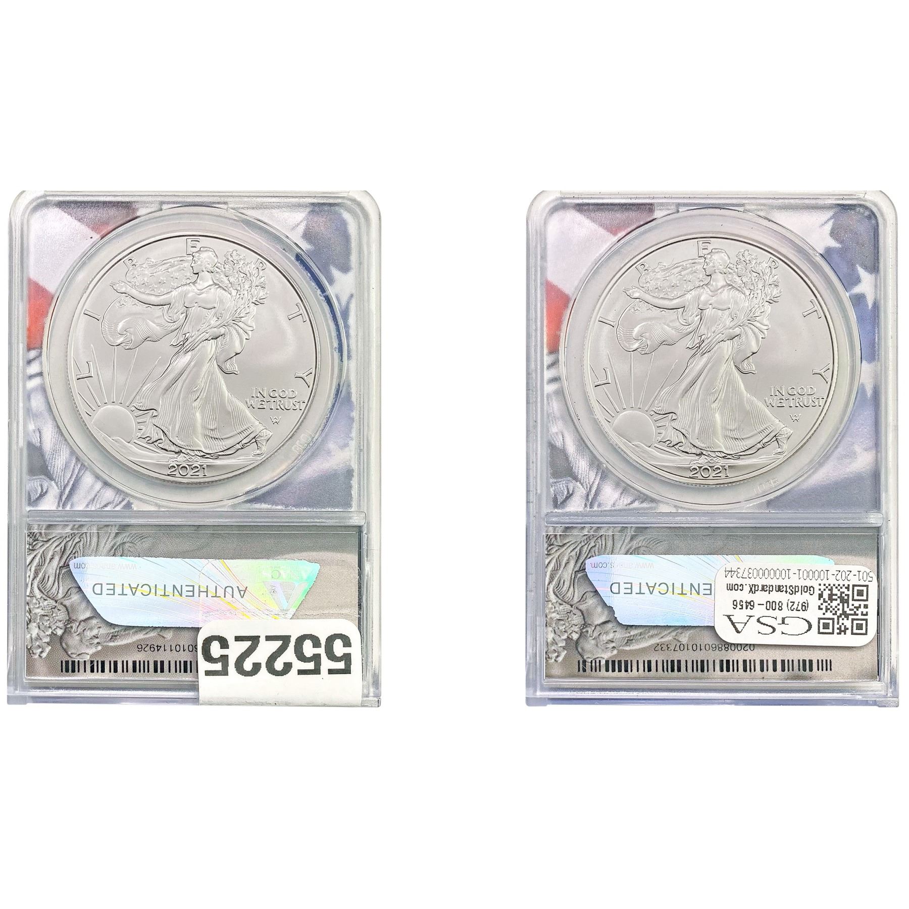 COINS AND CURRENCY LISTED IN GSA’S CATALOG AS GRADED AND ENCAPSULATED BY PCGS, NGC, ANACS, ICG, PCGS CURRENCY, PMG, PCGS BANKNOTE GRADING, CMC OR ANY OTHER THIRD-PARTY GRADING SERVICE ARE LIKEWISE SOLD “AS-IS” EXCEPT AS EXPRESSLY SET FORTH HEREIN. ALL THIRD-PARTY GRADING SERVICE GUARANTEES, INCLUDING AUTHENTICITY, ARE THE SOLE RESPONSIBILITY OF THE THIRD-PARTY GRADING SERVICE AND NOT WARRANTIES OR GUARANTEES OF GSA. BIDDERS SHOULD CONTACT THESE THIRD-PARTY GRADING SERVICES DIRECTLY WITH RESPECT TO ANY CLAIMS OR QUESTIONS THEY MAY HAVE CONCERNING THEIR GUARANTEES AND WARRANTIES. BIDDERS ACKNOWLEDGE AND AGREE THAT AUCTIONEER IS NOT BOUND BY OR LIABLE FOR ANY OPINION OR CERTIFICATION BY ANY THIRD-PARTY GRADING SERVICE. REMOVAL OF A PRODUCT FROM ITS PROTECTIVE CASING OR HOLDER OR ALTERATION OF ANY COIN HOLDER WAIVES ALL RIGHTS CONCERNING THE PRODUCT CONTAINED THEREIN.