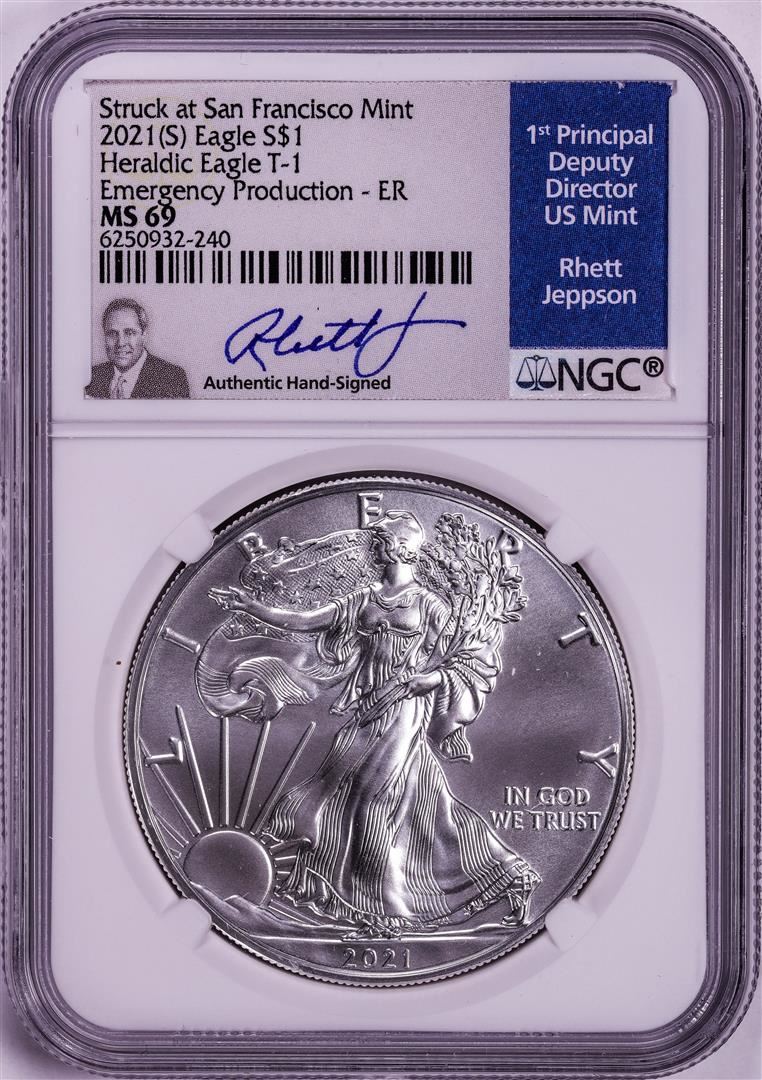 2021(S) Ty. 1 $1 American Silver Eagle Coin NGC MS69 Jeppson Signed Emergency Release