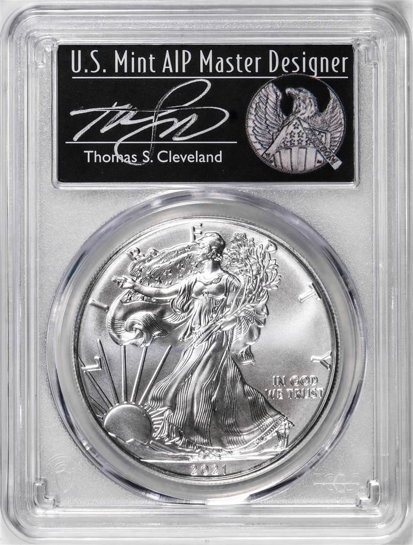 2021-(S) Ty. 1 $1 American Silver Eagle Coin PCGS MS70 Cleveland Signature FDOI