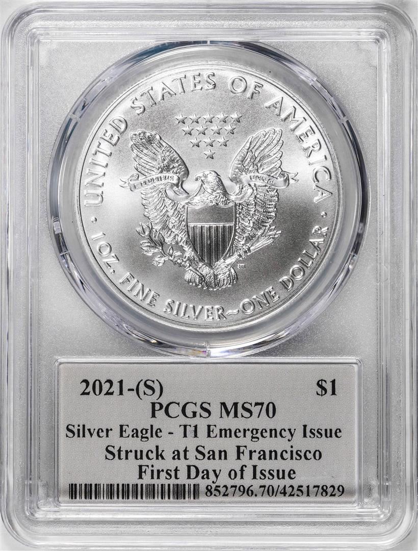 One 2021-(S) Ty. 1 $1 American Silver Eagle Coin PCGS MS70 Cleveland Signature FDOI. PCGS Graded.