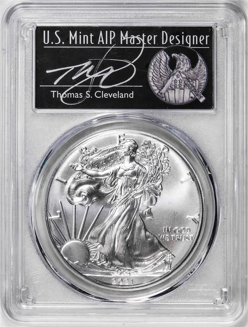 2021-(S) Ty. 1 $1 American Silver Eagle Coin PCGS MS70 Cleveland Signature FDOI