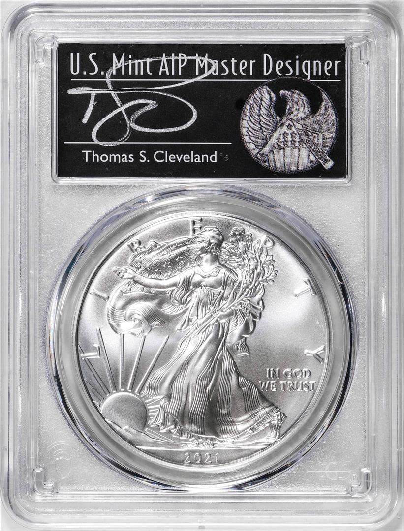2021-(S) Ty. 1 $1 American Silver Eagle Coin PCGS MS70 Cleveland Signed San Francisco