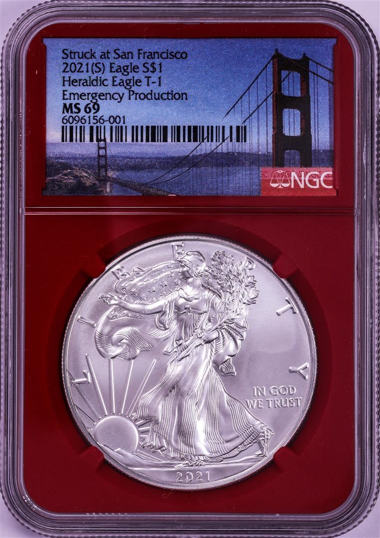 One 2021-(S) Type 1 $1 American Silver Eagle Coin NGC MS69 Red Core.