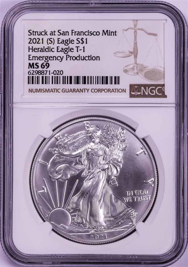 One 2021-(S) Type 1 $1 American Silver Eagle Coin NGC MS69.