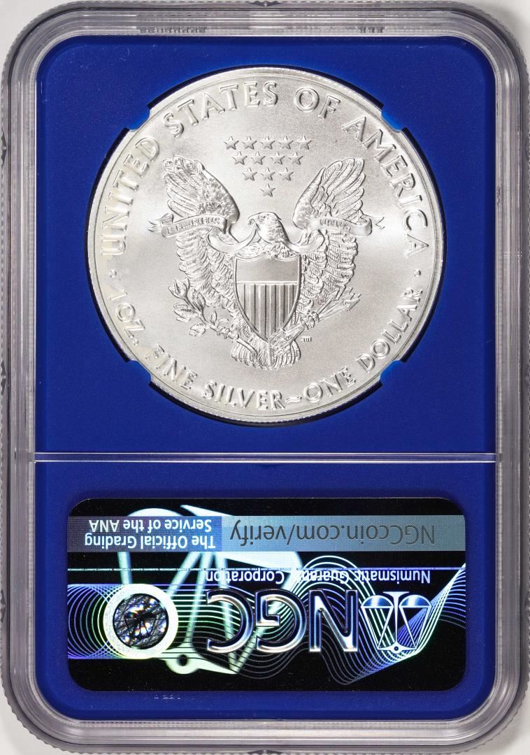 One 2021(S) Type 1 $1 American Silver Eagle Coin NGC MS70 FDI San Francisco Blue Core. NGC Certified.