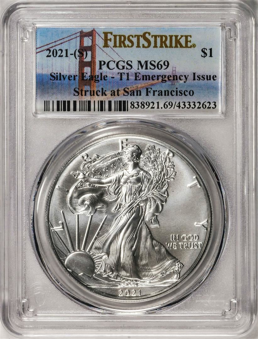 2021-(S) Type 1 $1 American Silver Eagle Coin PCGS MS69 First Strike Emergency Issue