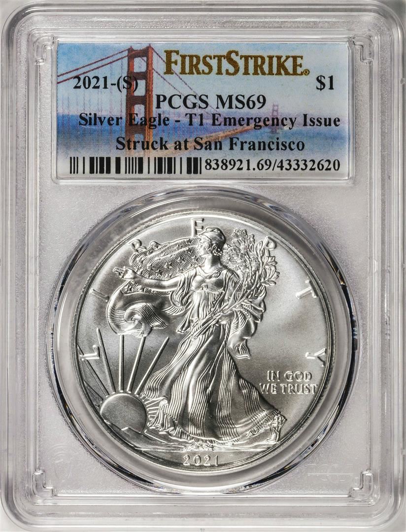 2021-(S) Type 1 $1 American Silver Eagle Coin PCGS MS69 First Strike Emergency Issue