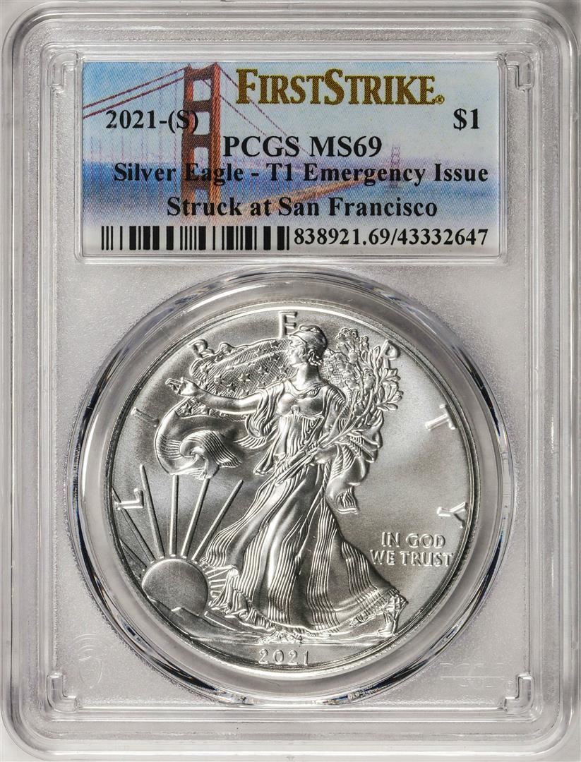 2021-(S) Type 1 $1 American Silver Eagle Coin PCGS MS69 First Strike Emergency Issue