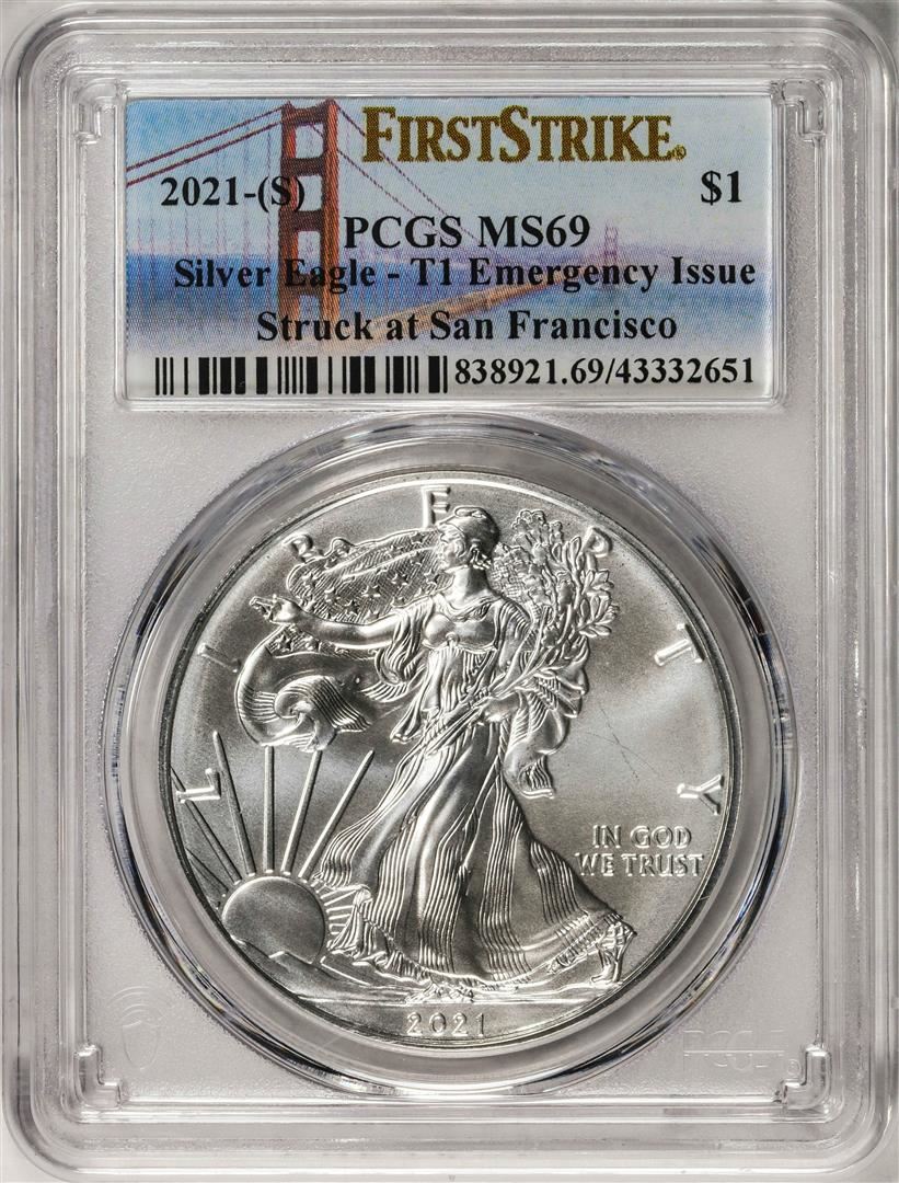 2021-(S) Type 1 $1 American Silver Eagle Coin PCGS MS69 First Strike Emergency Issue