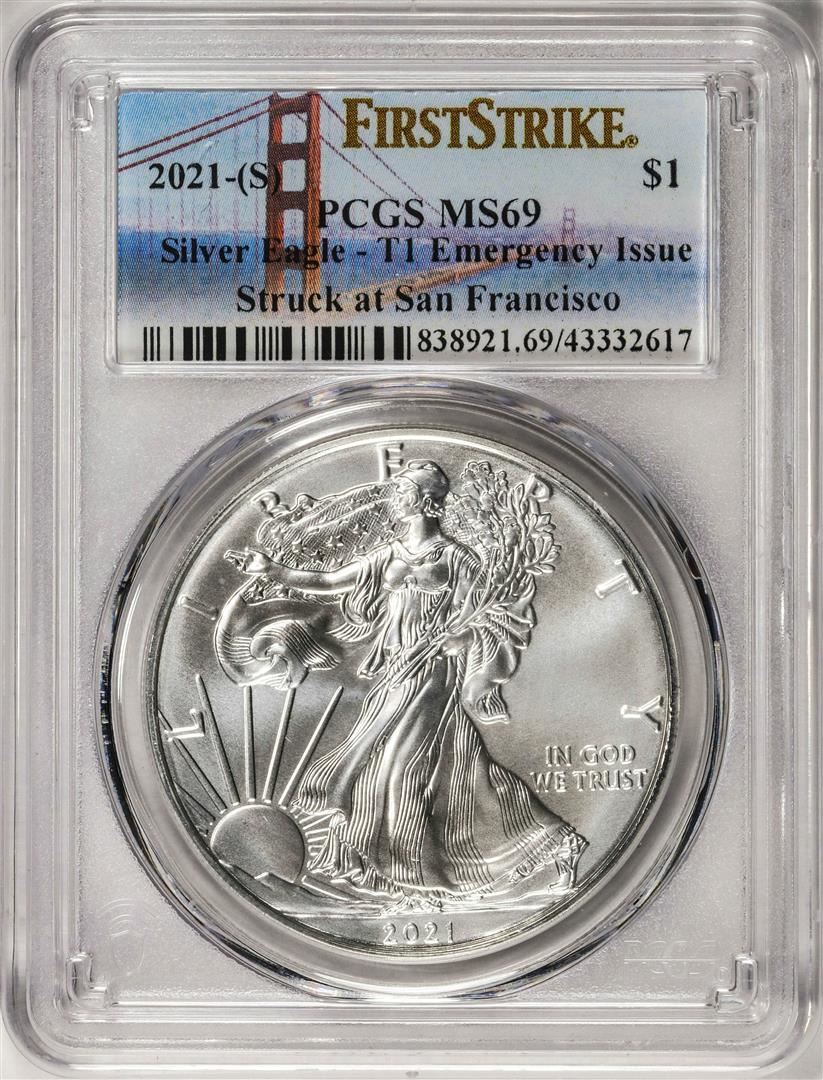2021-(S) Type 1 $1 American Silver Eagle Coin PCGS MS69 First Strike Emergency Issue