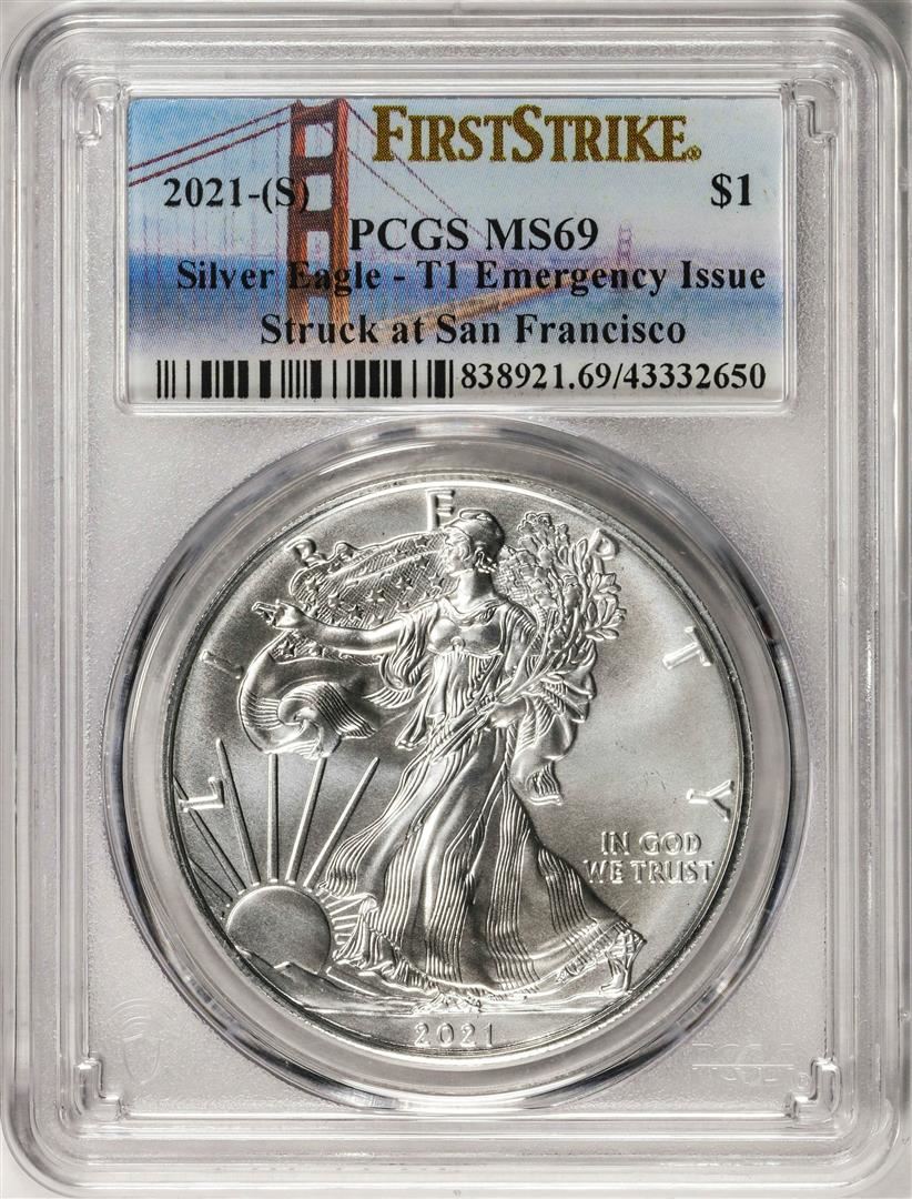 2021-(S) Type 1 $1 American Silver Eagle Coin PCGS MS69 First Strike Emergency Issue