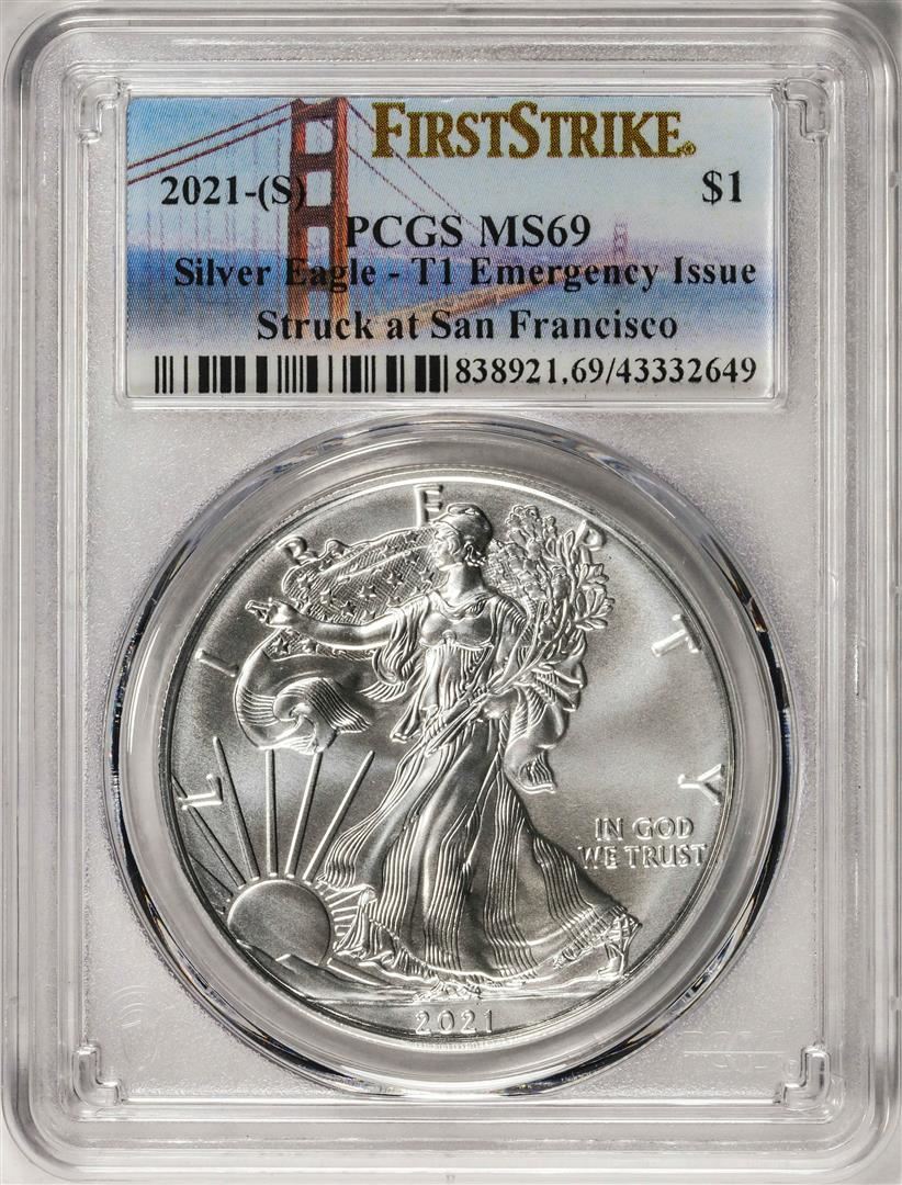 2021-(S) Type 1 $1 American Silver Eagle Coin PCGS MS69 First Strike Emergency Issue