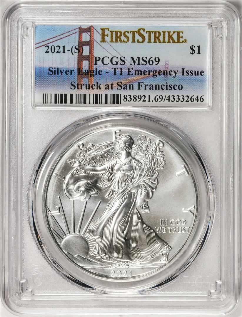 2021-(S) Type 1 $1 American Silver Eagle Coin PCGS MS69 First Strike Emergency Issue
