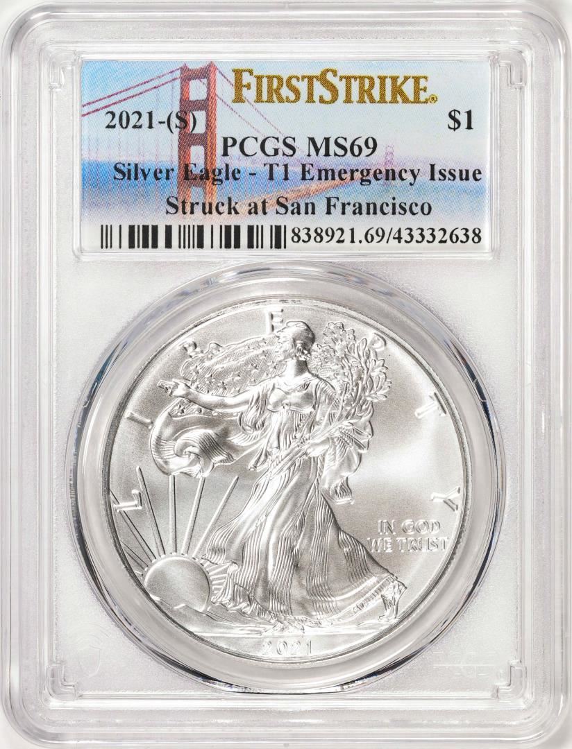 2021-(S) Type 1 $1 American Silver Eagle Coin PCGS MS69 First Strike Emergency Issue