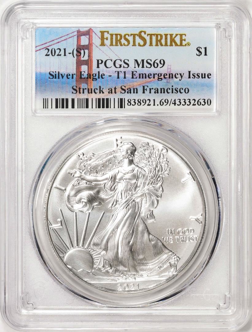 2021-(S) Type 1 $1 American Silver Eagle Coin PCGS MS69 First Strike Emergency Issue