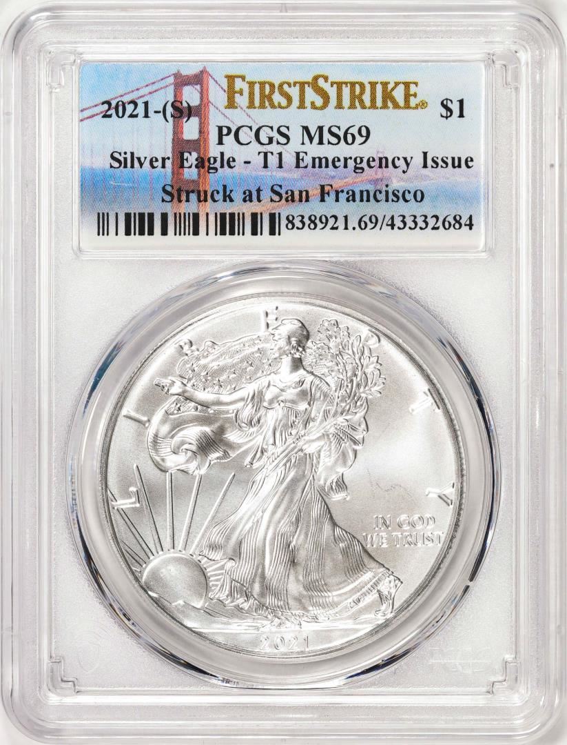 2021-(S) Type 1 $1 American Silver Eagle Coin PCGS MS69 First Strike Emergency Issue