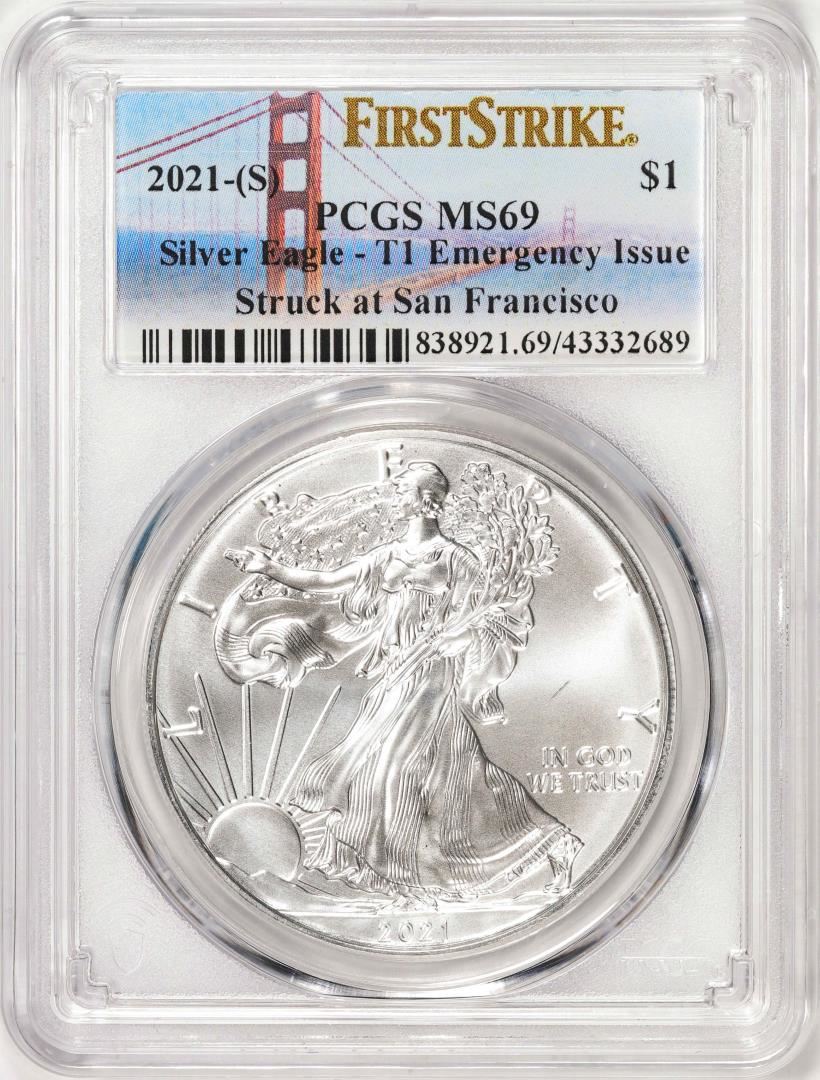 2021-(S) Type 1 $1 American Silver Eagle Coin PCGS MS69 First Strike Emergency Issue