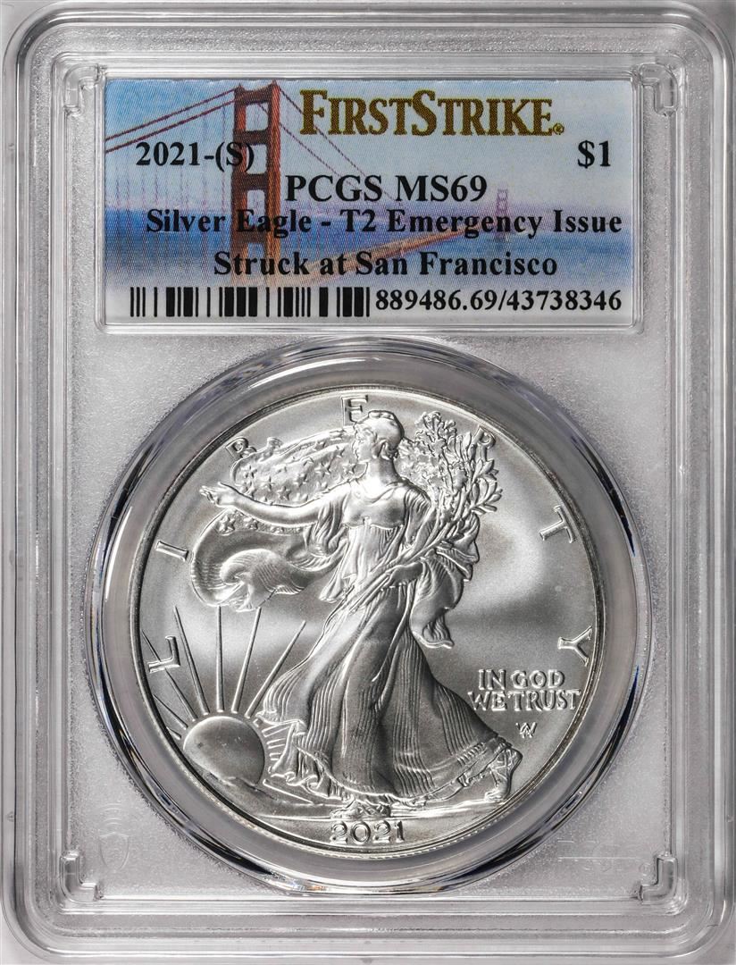 2021-(S) Type 2 $1 American Silver Eagle Coin PCGS MS69 First Strike Emergency Issue