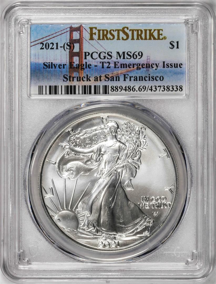 2021-(S) Type 2 $1 American Silver Eagle Coin PCGS MS69 First Strike Emergency Issue