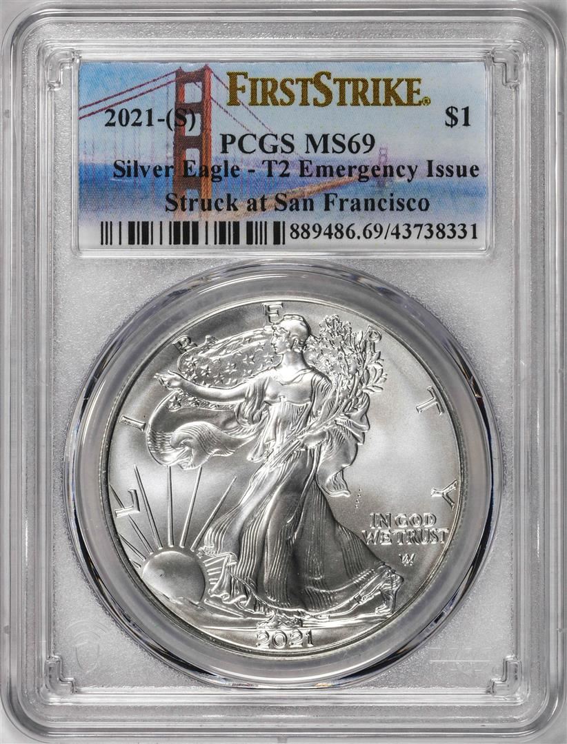 2021-(S) Type 2 $1 American Silver Eagle Coin PCGS MS69 First Strike Emergency Issue