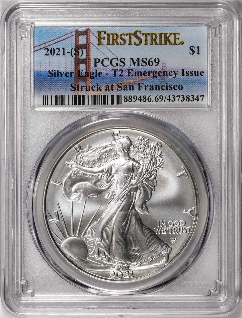 2021-(S) Type 2 $1 American Silver Eagle Coin PCGS MS69 First Strike Emergency Issue