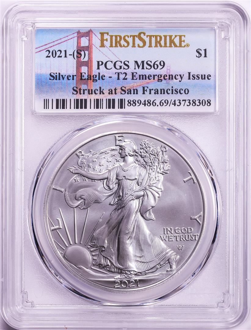 2021-(S) Type 2 $1 American Silver Eagle Coin PCGS MS69 First Strike Emergency Issue
