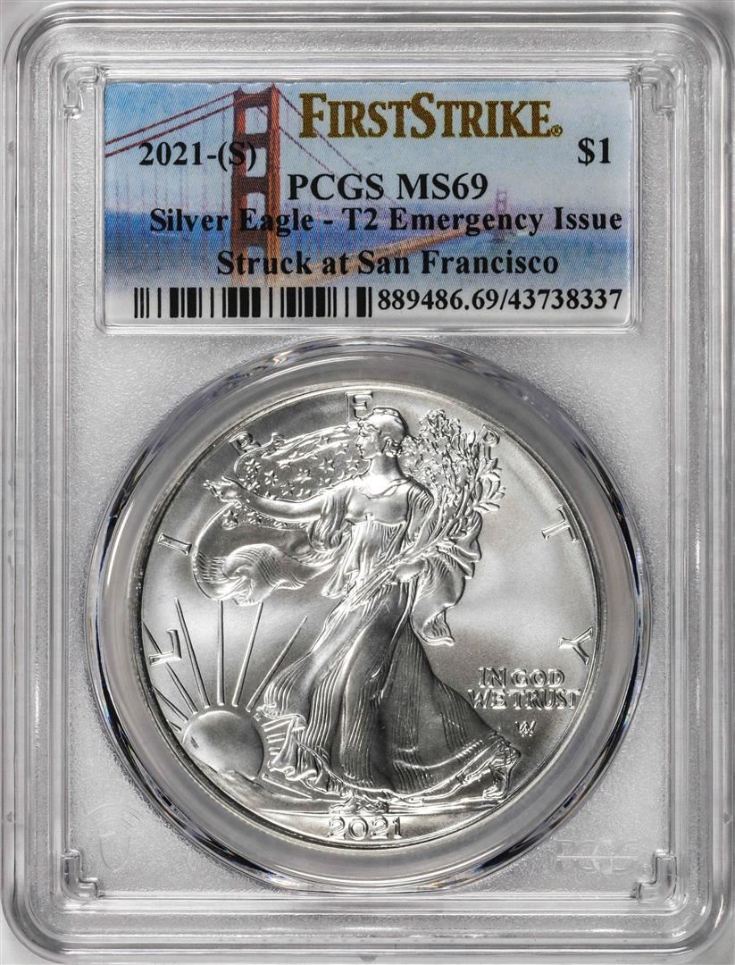 2021-(S) Type 2 $1 American Silver Eagle Coin PCGS MS69 First Strike Emergency Issue