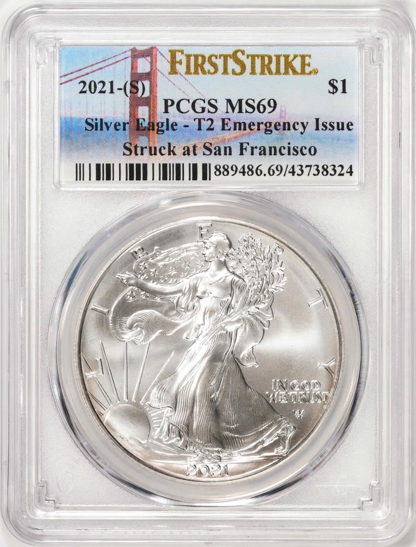 2021-(S) Type 2 $1 American Silver Eagle Coin PCGS MS69 First Strike Emergency Issue