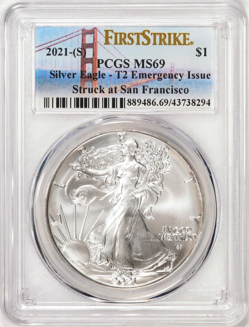 2021-(S) Type 2 $1 American Silver Eagle Coin PCGS MS69 First Strike Emergency Issue