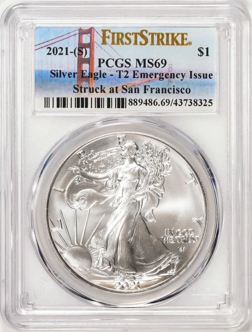 2021-(S) Type 2 $1 American Silver Eagle Coin PCGS MS69 First Strike Emergency Issue