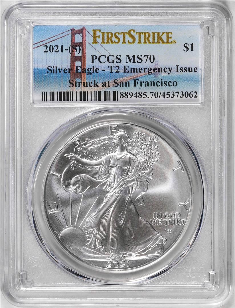 2021-(S) Type 2 $1 American Silver Eagle Coin PCGS MS70 First Strike Emergency Issue