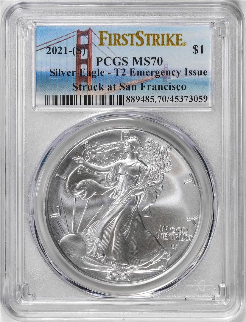 2021-(S) Type 2 $1 American Silver Eagle Coin PCGS MS70 First Strike Emergency Issue