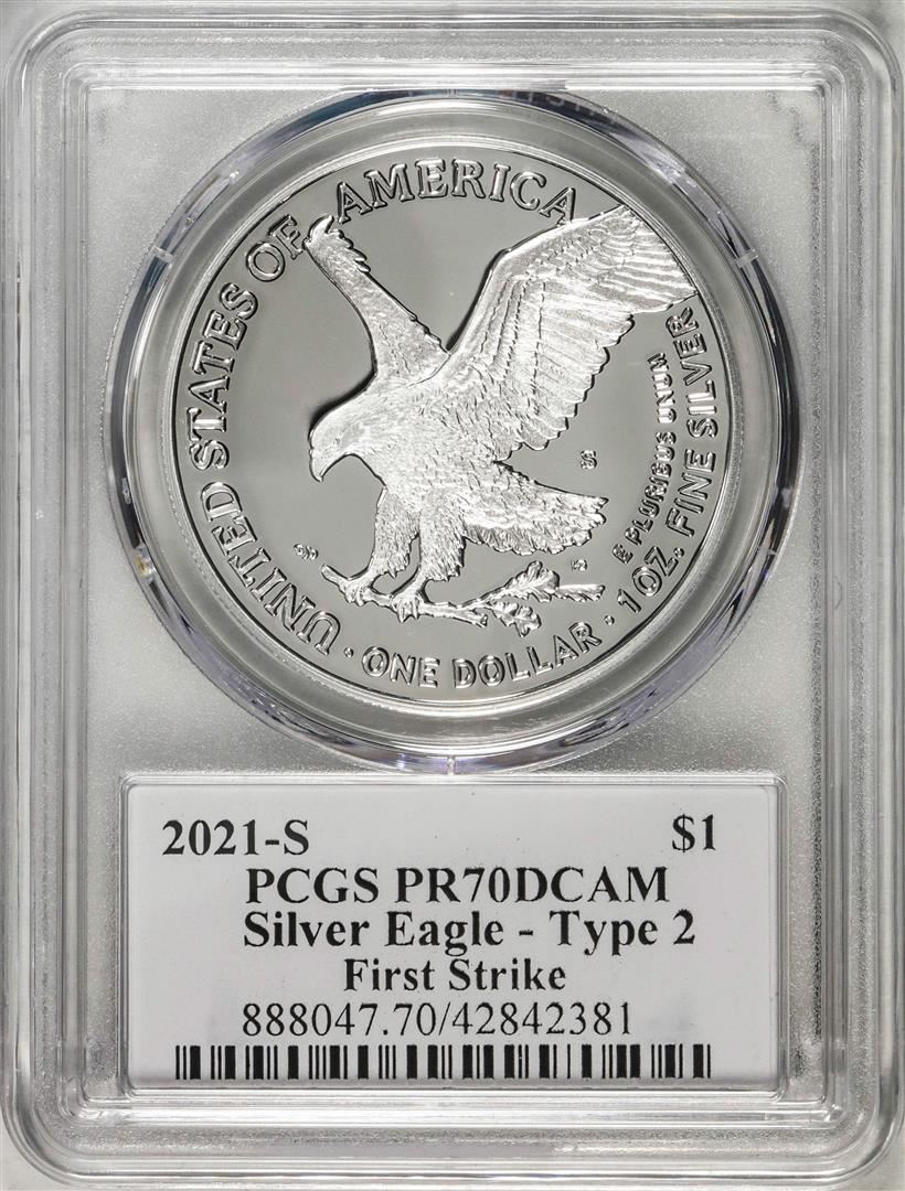 2021-S Type 2 $1 American Silver Eagle Coin PCGS PR70DCAM Emily Damstra Signature FS