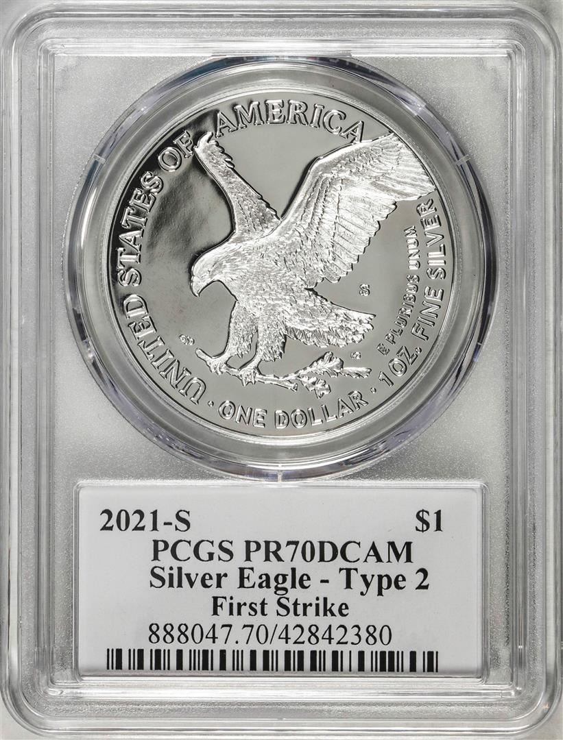 2021-S Type 2 $1 American Silver Eagle Coin PCGS PR70DCAM Emily Damstra Signature FS