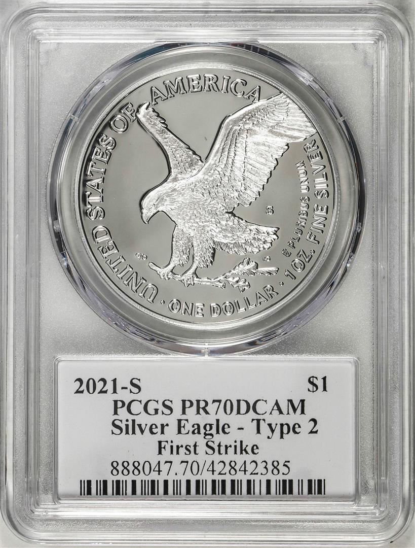 2021-S Type 2 $1 American Silver Eagle Coin PCGS PR70DCAM Emily Damstra Signature FS