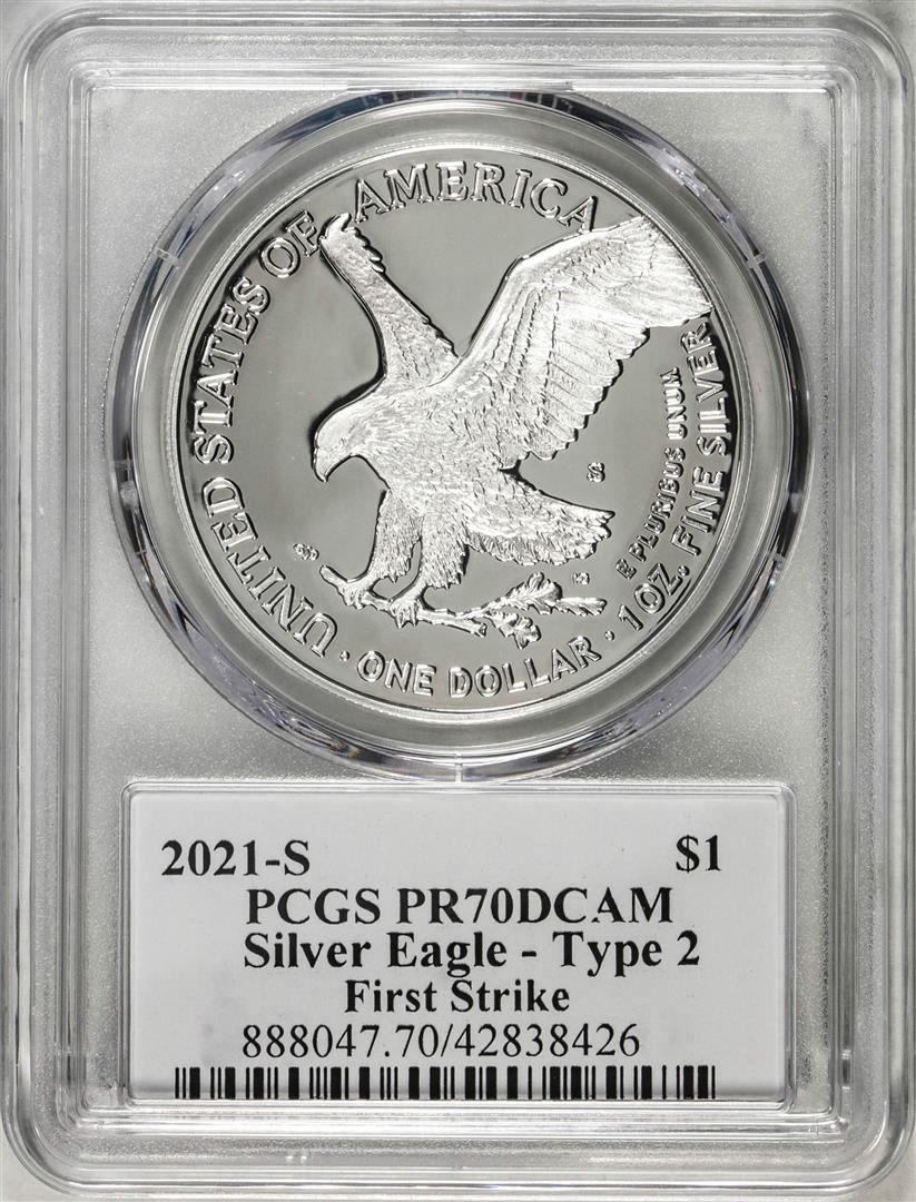 2021-S Type 2 $1 American Silver Eagle Coin PCGS PR70DCAM Emily Damstra Signature FS