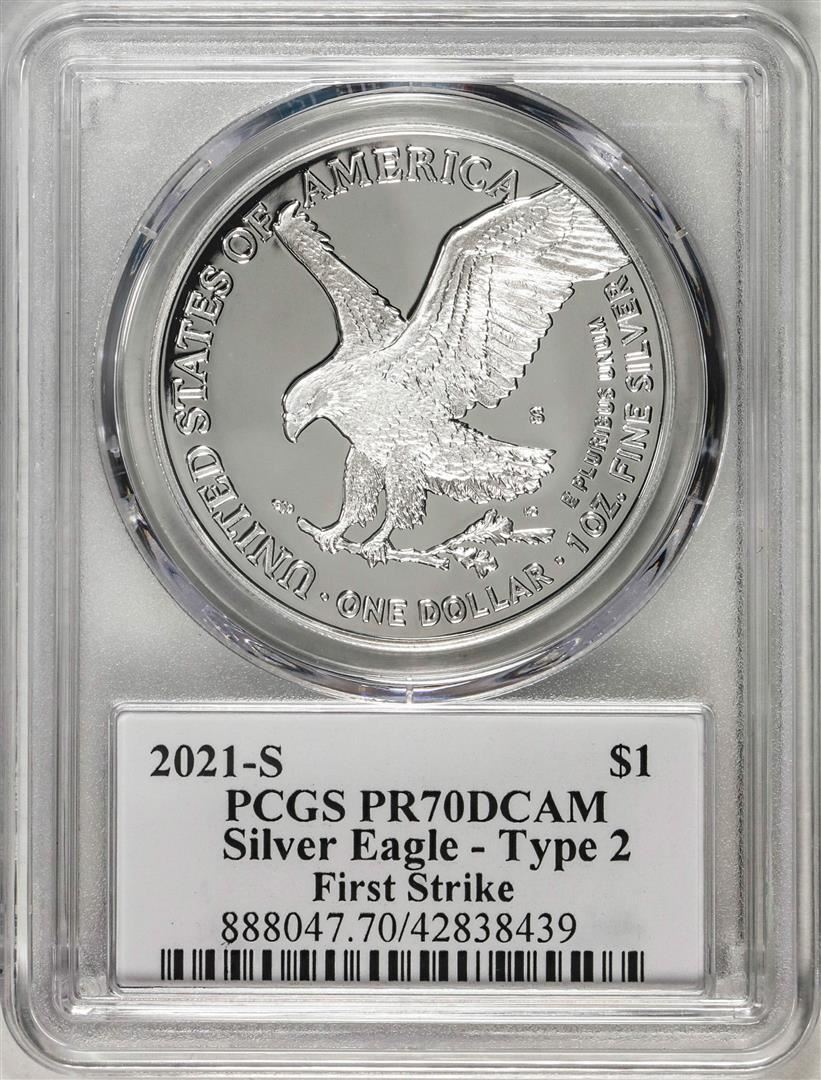2021-S Type 2 $1 American Silver Eagle Coin PCGS PR70DCAM Emily Damstra Signature FS