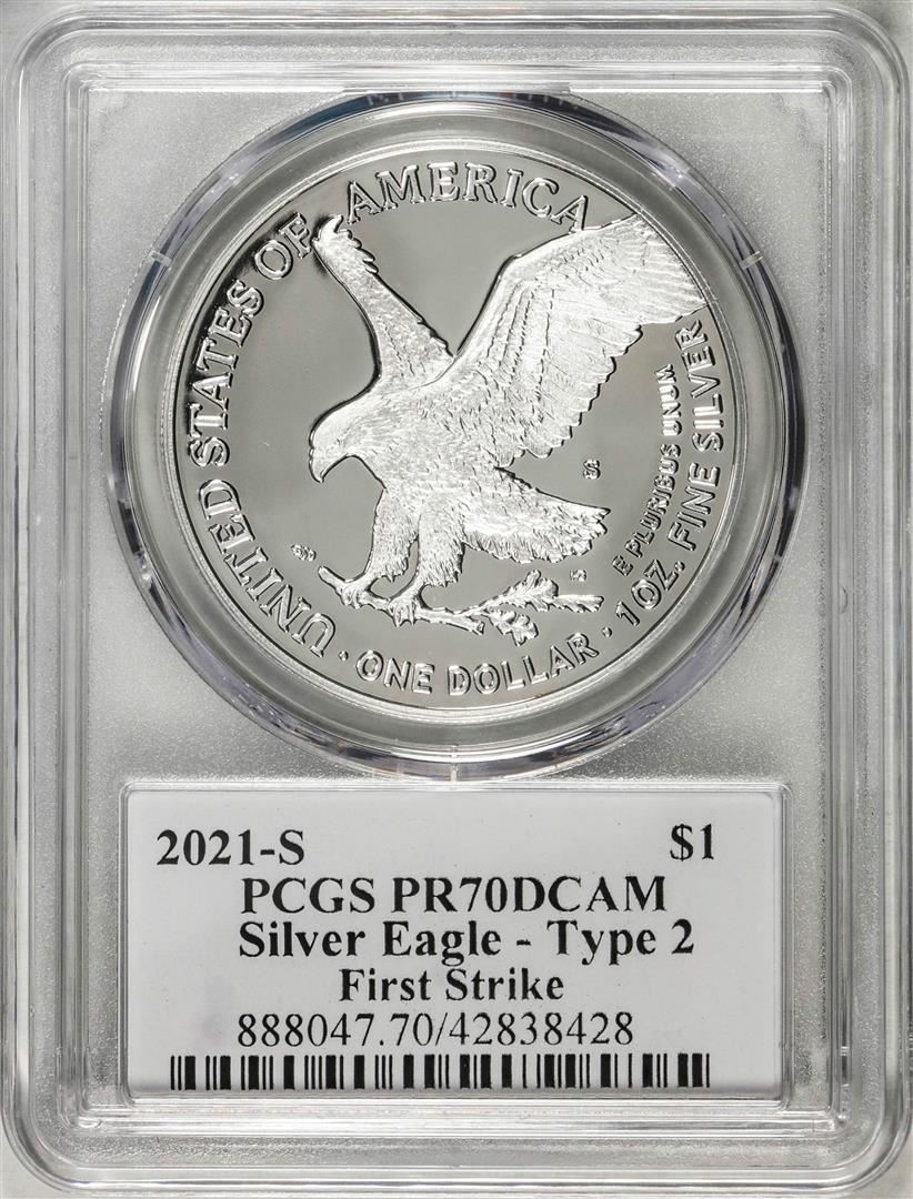 2021-S Type 2 $1 American Silver Eagle Coin PCGS PR70DCAM Emily Damstra Signature FS