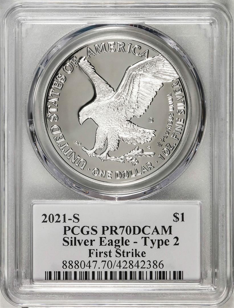 2021-S Type 2 $1 American Silver Eagle Coin PCGS PR70DCAM Emily Damstra Signature FS
