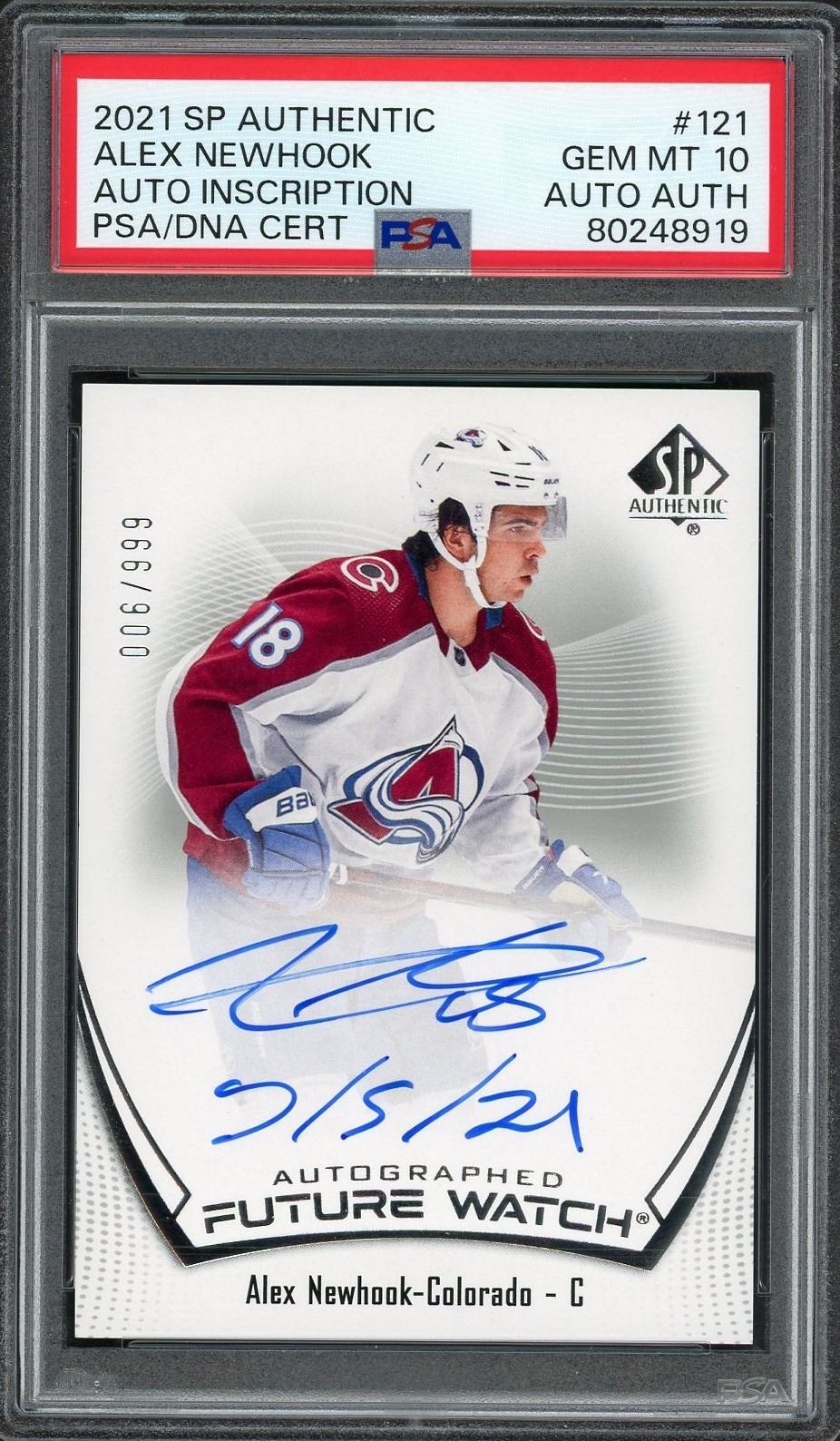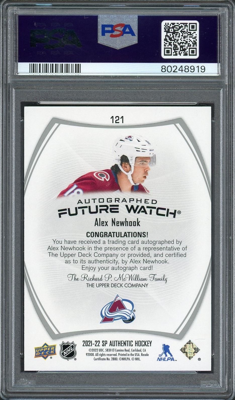 This is a POP 1 PSA 10! meaning there are no others out there graded with PSA as nice or better then this one. This is an inscribed future watch autograph by Alex Newhook formerly of the Colorado Avalanche now with the Montreal Canadiens.